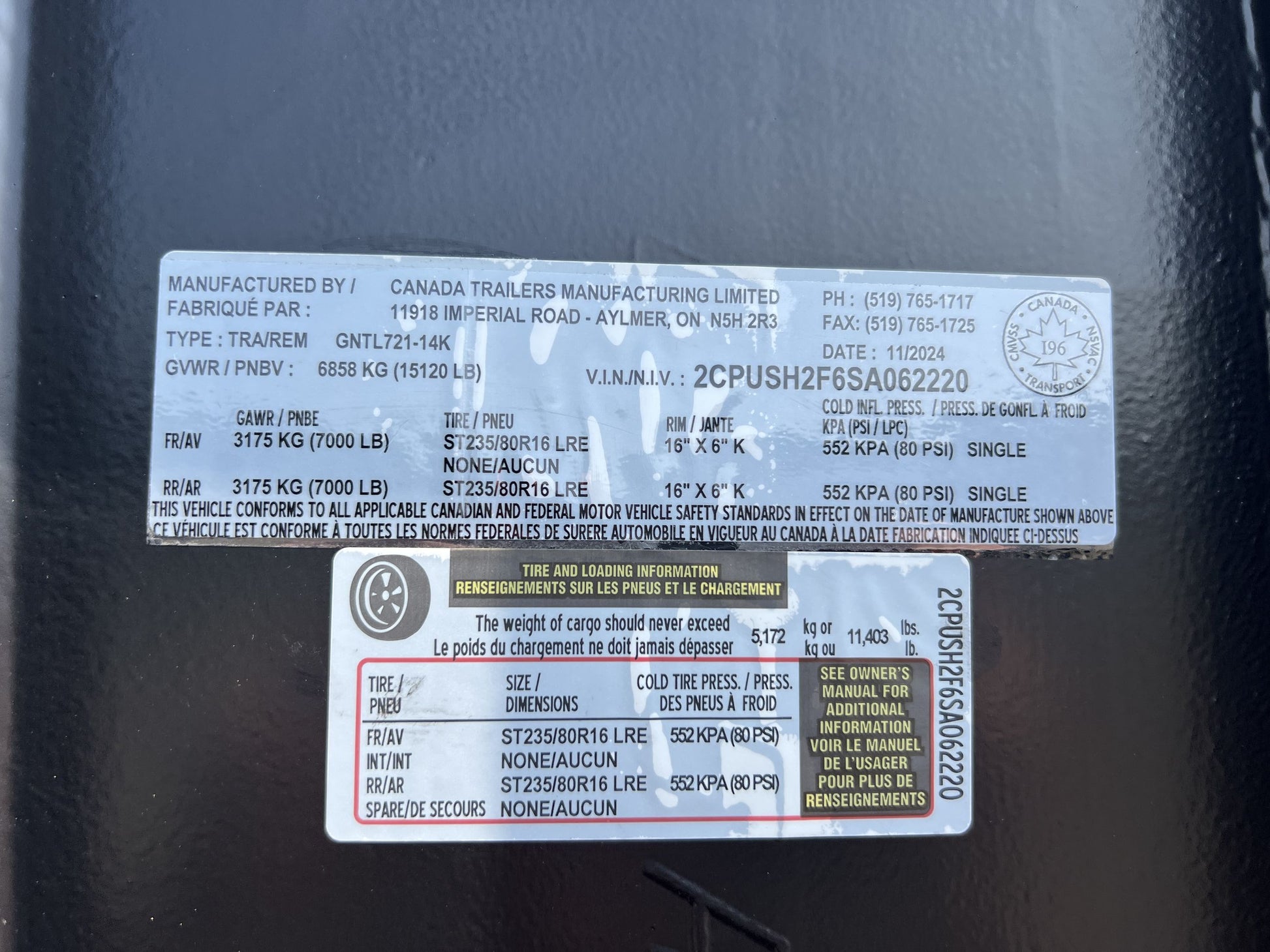 2024 Tilt Load Trailer (GNTL721-14K) 7'x12', GVWR: 15,120lbs, #62220